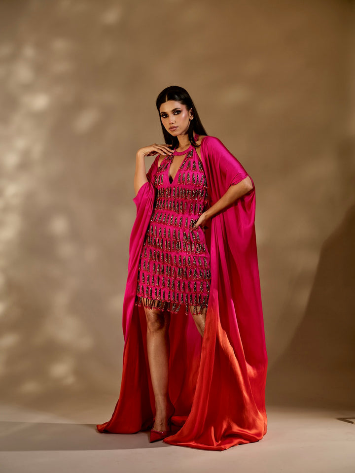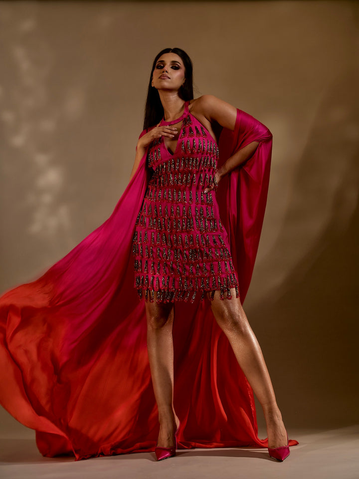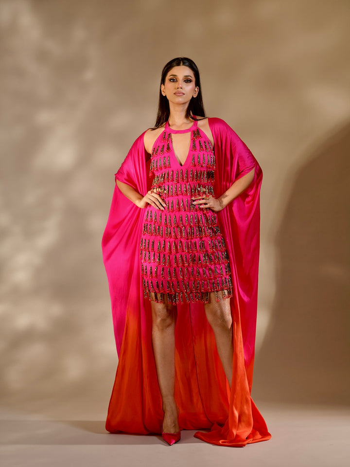 An ethereal piece from Suryast — where twilight meets divinity. Flowing, luminous, and regal, this silhouette drapes you in effortless beauty. The ombrés and solid tones capture the spiritual glow of sunset, while every detail whispers of royalty and grace. Paired with crystal accents that gleam like prayers in starlight, this outfit is designed to make you feel like the eternal goddess you are.